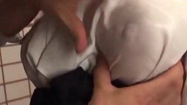 Asian housewife licking balls and