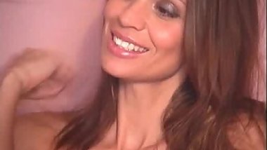 Sexy brunette mom plays with her